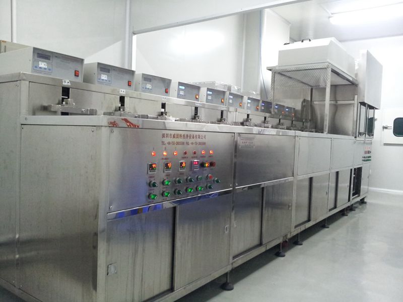 AR光波導電光學模組超聲波清洗機深圳威固特VGT-1407FH為光學玻璃超聲波清洗機,設備共有14個功能槽,配置有前處理系統、循環過濾系統、預熱箱系統、自動恒溫系統、拋動系統、超聲波清洗系統、抽風裝置等。