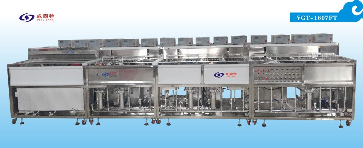 VGT-1309FT為紅外線濾光片超聲波清洗機(jī),設(shè)備共有13個功能槽,配置有浸泡系統(tǒng)、循環(huán)過濾系統(tǒng)、自動恒溫系統(tǒng)拋動系統(tǒng)、超聲波清洗系統(tǒng)、慢拉脫水系統(tǒng)、熱風(fēng)烘干系統(tǒng)、密閉氣缸門系統(tǒng)、抽風(fēng)裝置等。設(shè)備采用環(huán)保型水溶劑洗滌、純水漂洗,為環(huán)保型清洗機(jī);